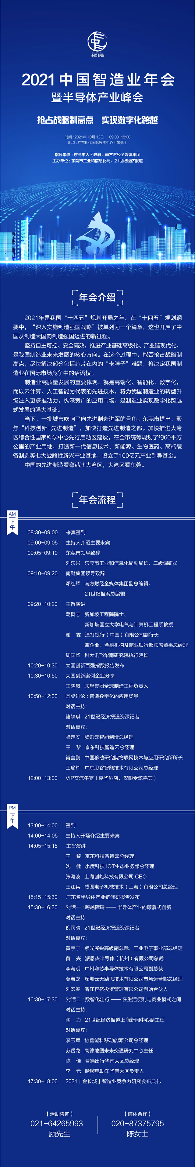 迄今为止,“中国智造促进计划”已成功举办5次年会、1次企业家校园行、累计走访调研企业超200家,遍布珠三角、长三角及京津冀及西安、武汉、济南等区域,同期活动媒体传播价值累计超过1.5个亿,备受企业好评! 2021年是“十四五”第一年,也是进入新世界格局变化的重要之年,同时是建党100周年,更是提出强国战略、自主创新、实施替代战略的关键一年。 2021中国智造促进计划将以“中国智造·创新未来”为主题,重点关注各个产业围绕技术创新、产品创新以及模式创新等方面的发展,以客观而全面的视角记录当前中国智造发展的最新面貌。